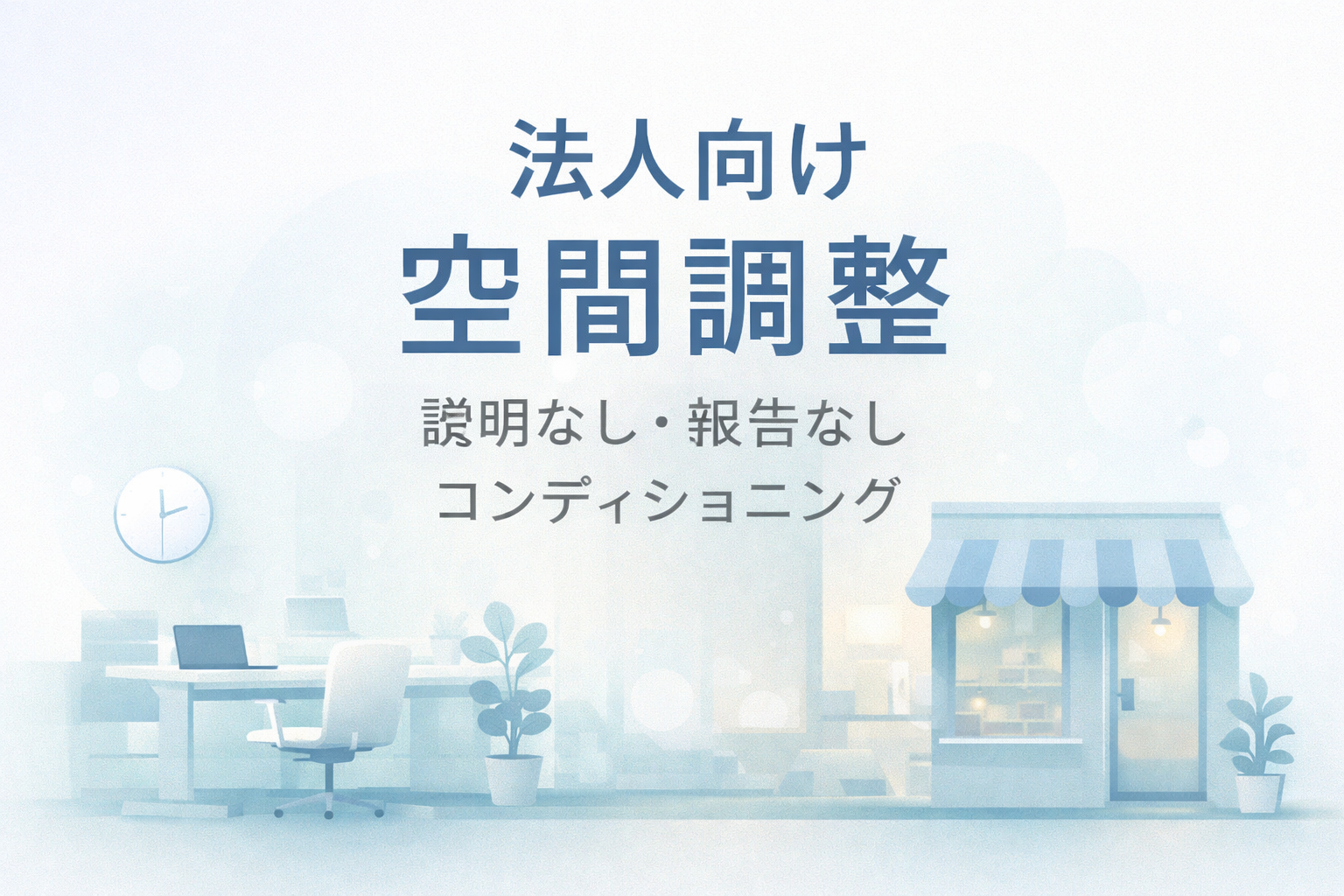 ― 業務効率・滞在感・空気感を整えるための新しい外注 ― 店舗やオフィス、宿泊施設において「なぜか落ち着かない」「人が定着しない」「空気が重い」そう感じたことはありませんか。 空間調整(コンディショニング)は、設備・内装・人員とは別軸で“空間の状態そのもの”を整える業務です。 スピリチュアル体験や説明を目的としたものではなく、業務・運営の安定を目的とした調整業務として提供しています。 このような法人・事業者様向けです ホテル・宿泊施設 オフィス・店舗・商業施設 医療・福祉・教育関連施設 滞在感・集中・回転 ...