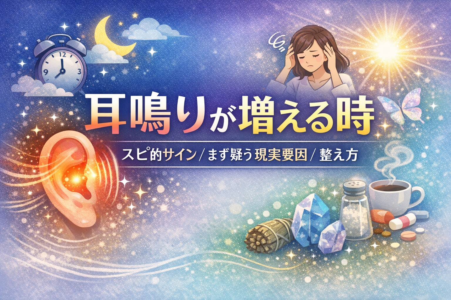 「最近、耳鳴りが増えた気がする」キーン、ジー、ボワン……音の種類もタイミングも人それぞれですが、続くと不安になりますよね。 スピリチュアル界隈では、耳鳴りは「エネルギーの変化」や「メッセージ」と結び付けて語られることもあります。一方で、耳の不調には現実的な原因が普通にあります。この記事では、耳鳴りを「スピで片づけない」「怖がりすぎない」ために、スピ的な捉え方とまず確認したい現実要因、そして整え方をまとめます。 ※耳鳴りが強い・突然悪化した・めまい/難聴/頭痛を伴う場合は、自己判断せず医療機関へ。スピ的な解 ...